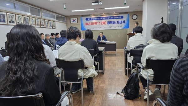 ()서울제주도민회장학회(이사장 김창희)202448일 오후 5, 서울 강서구 서울제주도민회 회의실에서 2024년도 1학기 장학금 지급식을 갖고 27명의 장학생에게 200만원씩 총 5,400만원을 지급하였다. 이번 장학금 지급식은 재단법인 설립 후 24년이 되는 해로 제48차 지급이며, 서울제주도민회 장학회가 창립된 이후로는 연112차에 이른다.